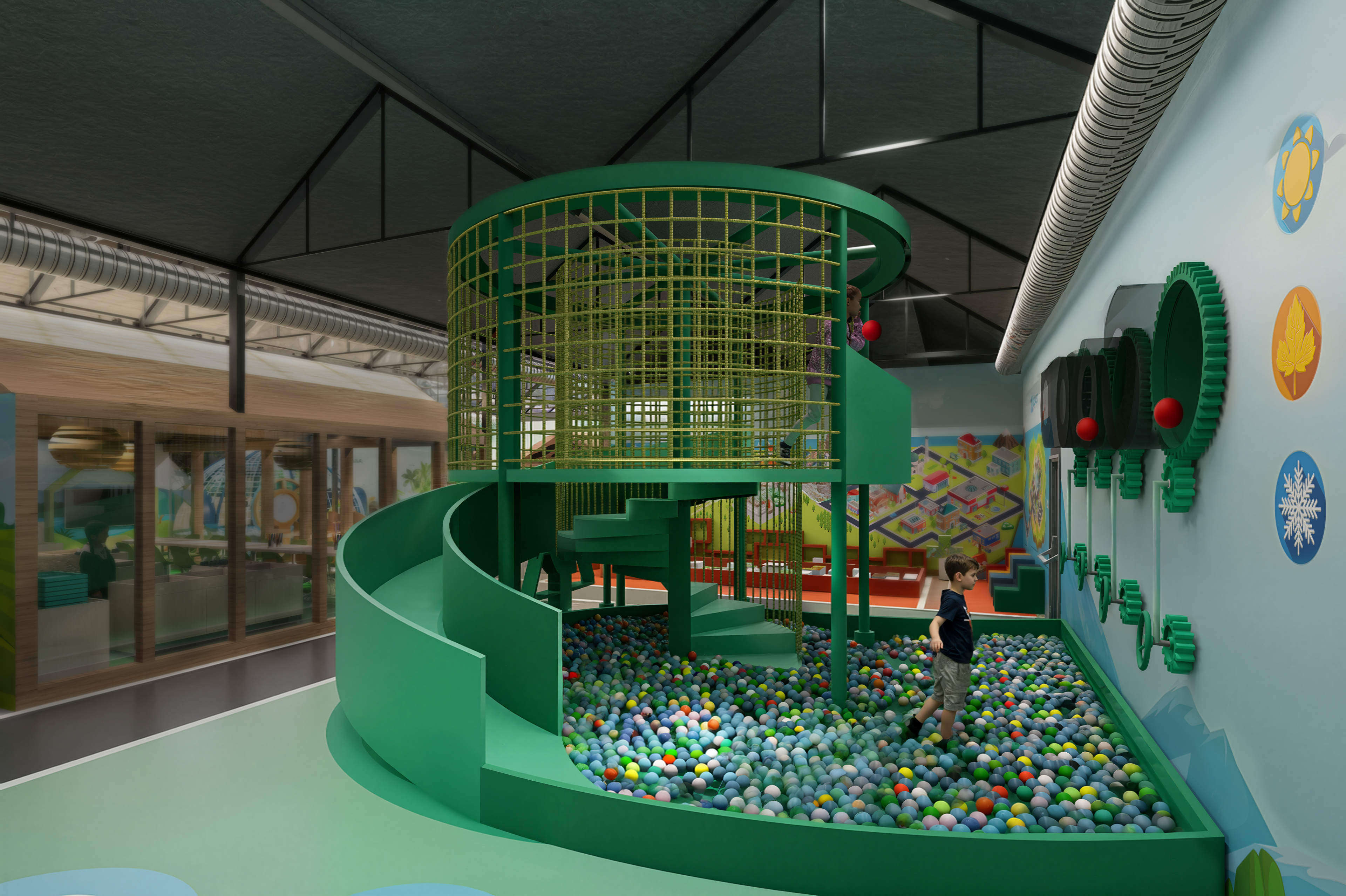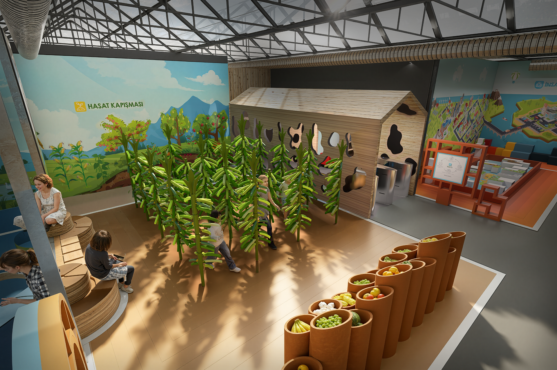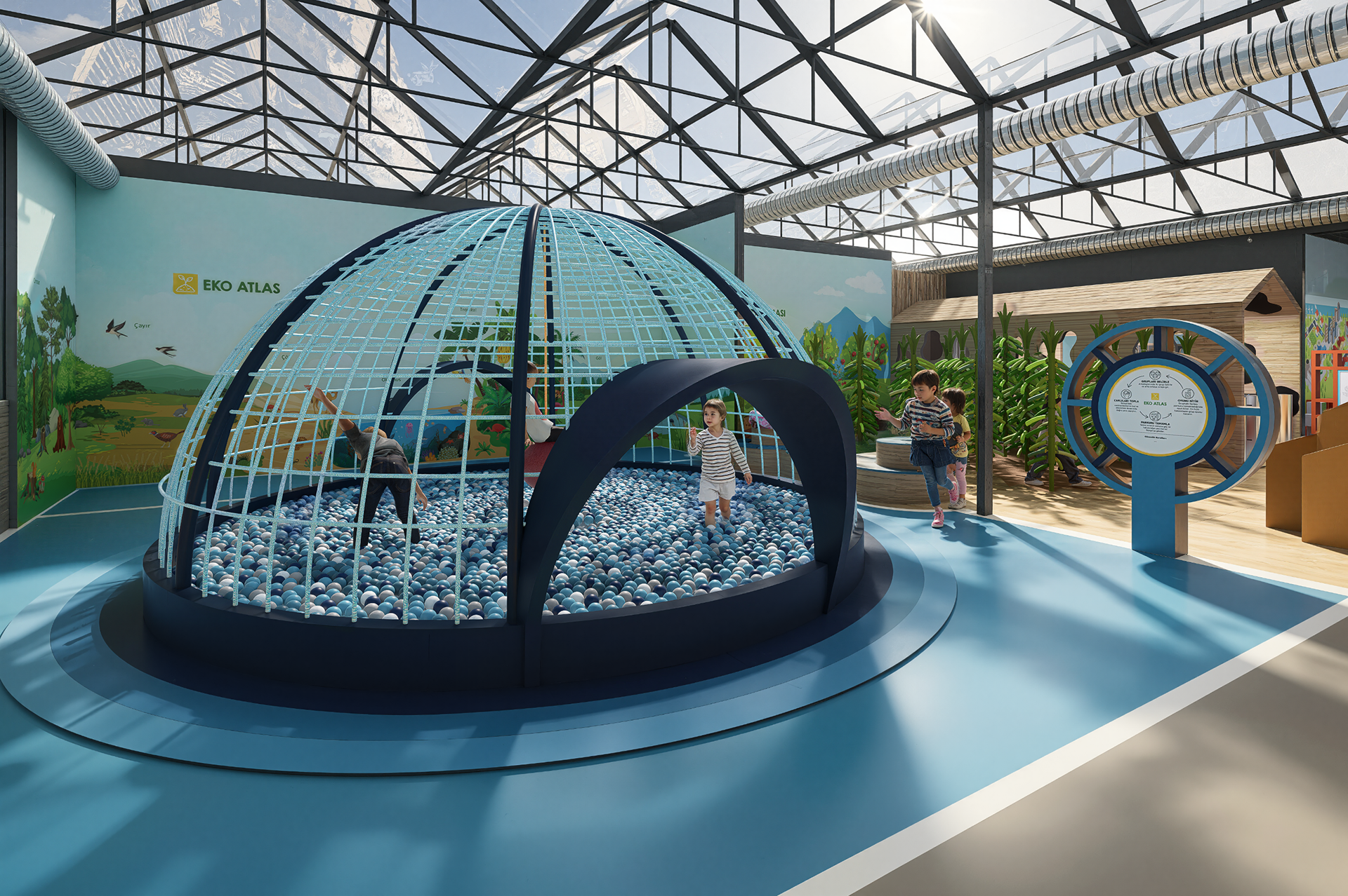 Mimari tasarım sürecinde, farklı temalara sahip alanlar; Dünya'dan Toprağa, Sıfır Atık, Tropik Ada ve Akıllı Çiftlik başlıkları altında organize edilmiştir. Bu alanlar, atölye alanı ile birlikte ana giriş, mağaza ve restoran fonksiyonlarıyla bütünleşecek şekilde planlanmış; mekânsal süreklilik ve kullanım senaryoları doğrultusunda tek bir mimari sistem içinde ele alınmıştır. Proje; farklı yaş gruplarına ve kullanım senaryolarına hitap eden tematik alanların, dolaşım, ölçek, malzeme ve mekânsal süreklilik kriterleri doğrultusunda bir araya getirilmesi üzerine kuruludur.